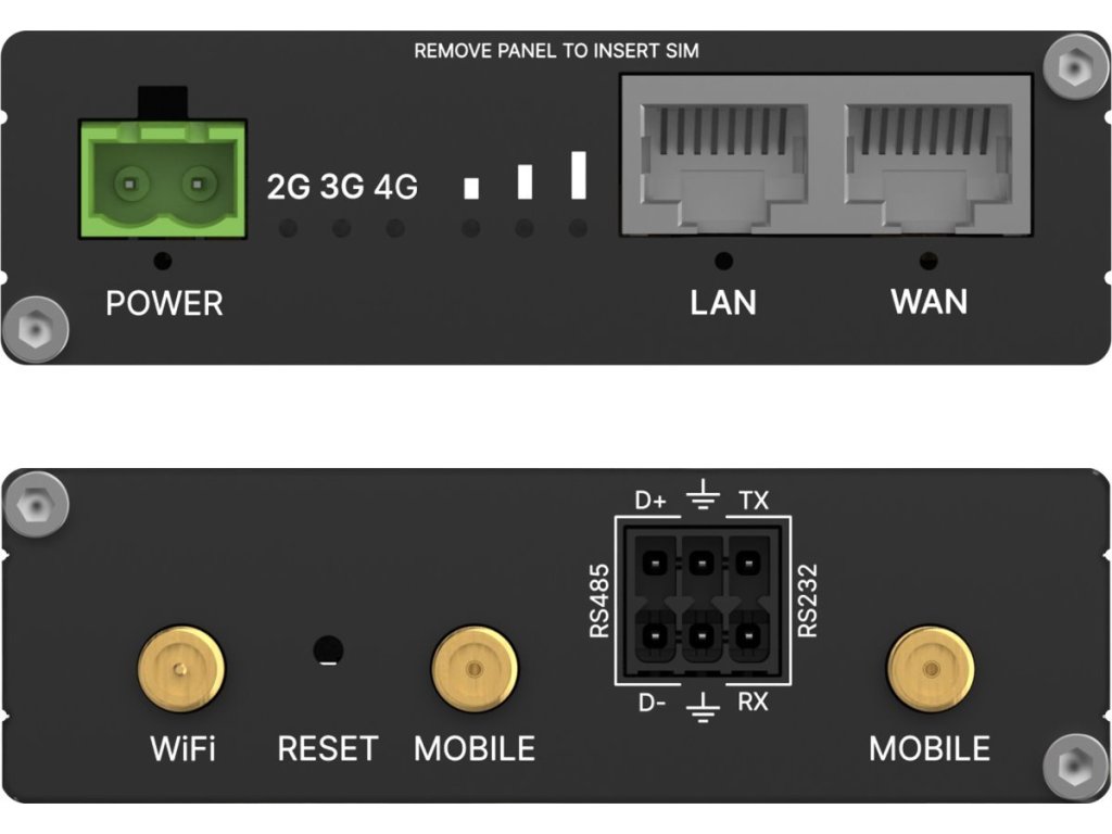- (2) SMA female (LTE) + (1) RSMA female (Wi-Fi)