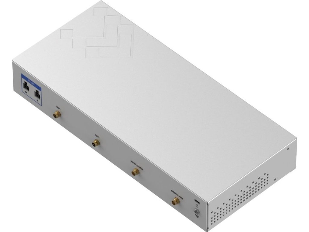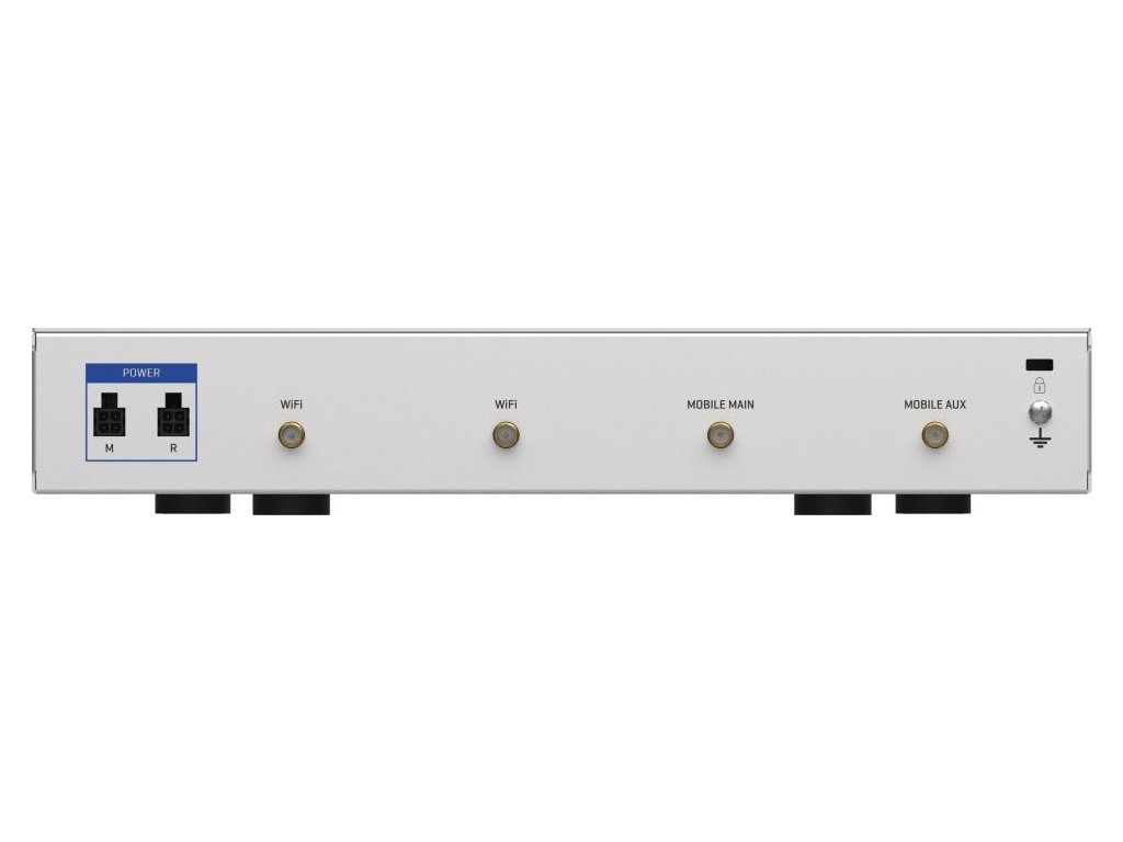 Rozhraní: 5x GbE RJ-45, 1x RJ-45 konzole (RS-232 komunikace), 1x SFP slot, 2x SIM slot (Mini SIM - 2FF), 2x SMA (LTE), 2x RP-SMA (Wi-Fi), 1x USB-A (externí zařízení)