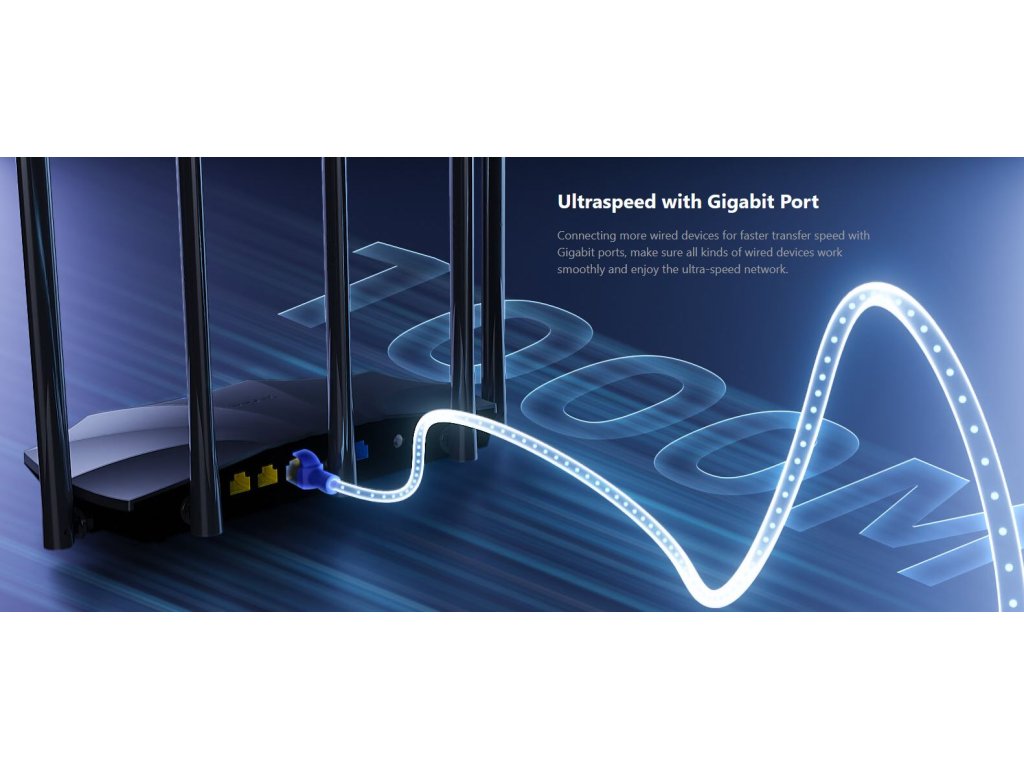 Router obsahuje celkem 3 Gigabitové LAN porty. Tento zabudovaný přepínač vyniká hlavně svojí vysokou propustností až 6 Gb/s. V kombinaci s Gigabitovým WAN portem je ideální pro připojení vysokorychlostního Internetu a provoz objemných datových přenosů.