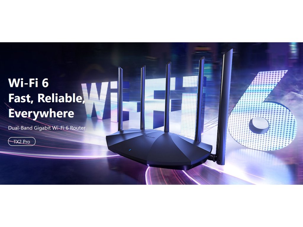 Tenda TX2 Pro AX1500 WiFi6 Router, 1x GWAN, 3x GLAN, IPv6, 5x 6dBi anténa, WPA3, CZ App