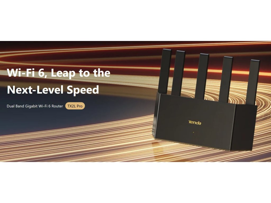 Tenda TX2L Pro AX1500 WiFi 6 Mesh Router, 1x GWAN, 3x GLAN, IPv6, 5x 6dBi anténa, WPA3, CZ App