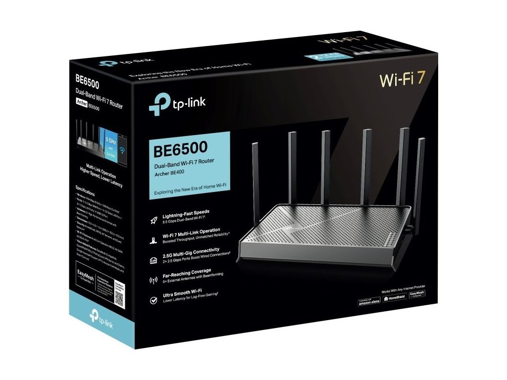 TP-Link Archer BE400 BE6500 WiFi 7 router, 2x 2,5GWAN/LAN, 3x GLAN, USB 3.0, EasyMesh