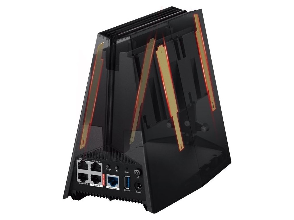 Router disponuje jedním 5Gbps WAN portem, jedním 5Gbps LAN portem, třemi 2,5Gbps LAN porty a jedním USB 3.0 portem, což zajišťuje maximální flexibilitu a zvýšenou propustnost pro kabelová herní zařízení a ultra-rychlé internetové připojení.
