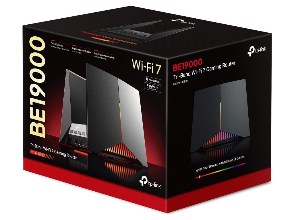 Špičkový herní router TP-Link Archer GE800 využívá nejnovější standard Wi-Fi 7 s technologií Multi-Link Operation (MLO), která umožňuje současné využití všech tří frekvenčních pásem – 6 GHz, 5 GHz a 2,4 GHz. Díky tomu dosahuje extrémní rychlosti až 19 Gbps a nabízí o 4× nižší latenci ve srovnání s routery Wi-Fi 6/6E.