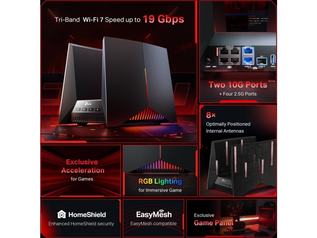 Revoluční herní router s Wi-Fi 7 technologií a bezkonkurenční rychlostí až 19 Gbps pro nejnáročnější hráče.
