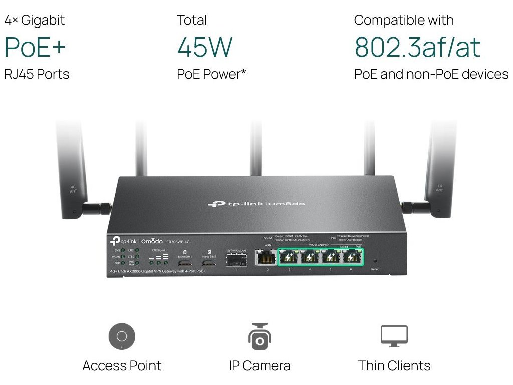 TP-Link ER706WP-4GOmada AX3000 4G+ Cat6 PoE+ Gigabit VPN Router