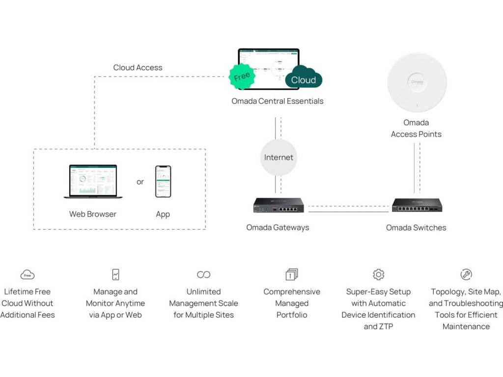 - Centrální cloudová správa přes Omada SDN, web nebo mobilní aplikaci