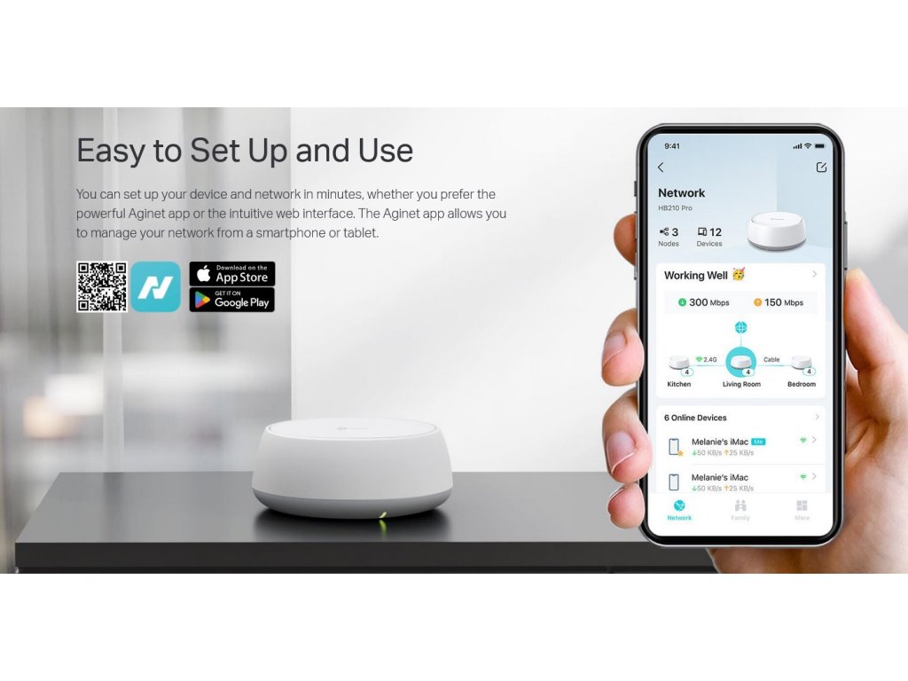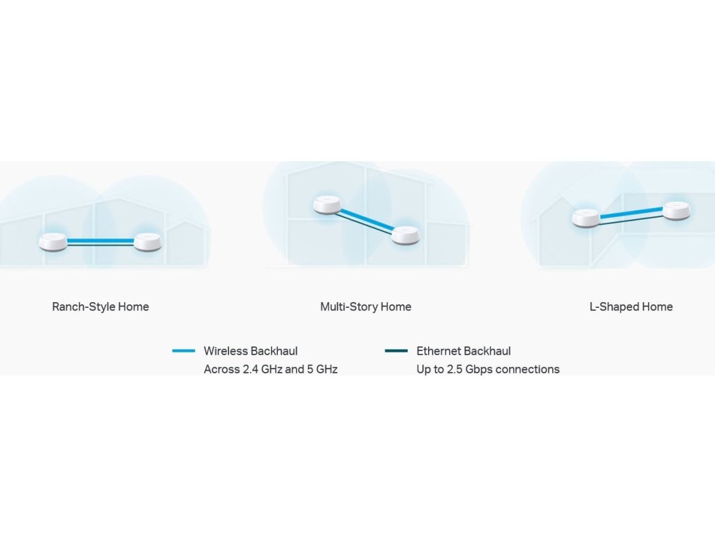 Systém podporuje režim routeru pro vytvoření soukromé sítě i režim přístupového bodu pro rozšíření stávající kabelové sítě. Ethernetový i bezdrátový backhaul spolupracují pro optimální výkon mesh sítě.