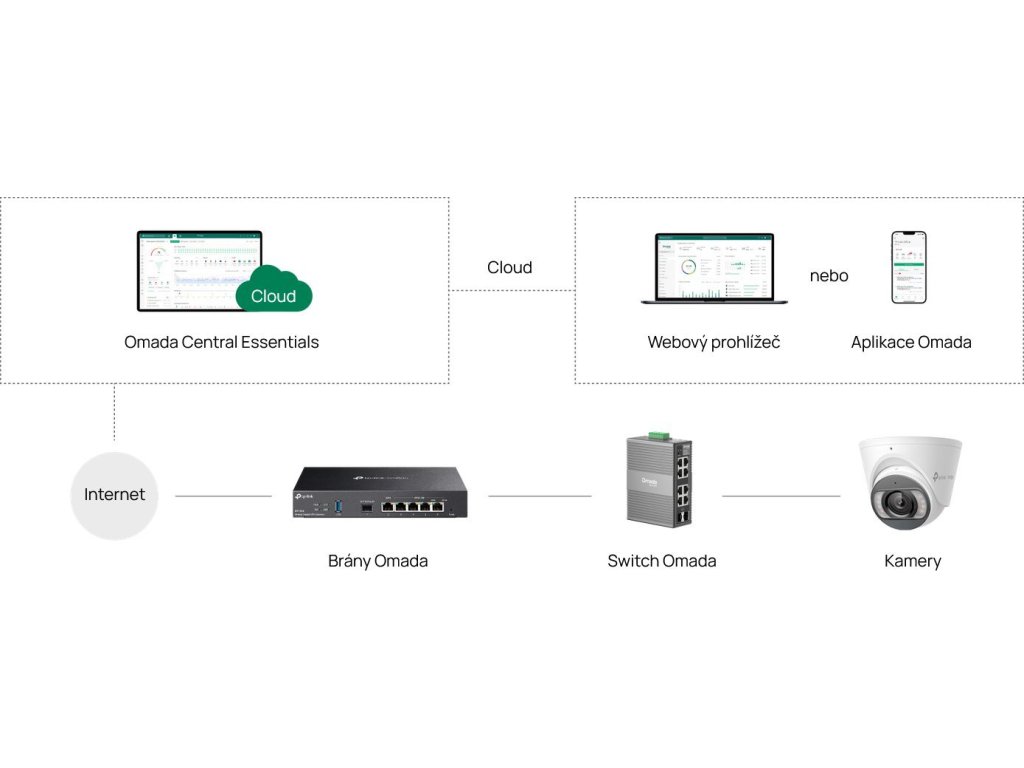 - Centralizovaná správa prostřednictvím cloudové platformy Omada (webové rozhraní nebo mobilní aplikace)