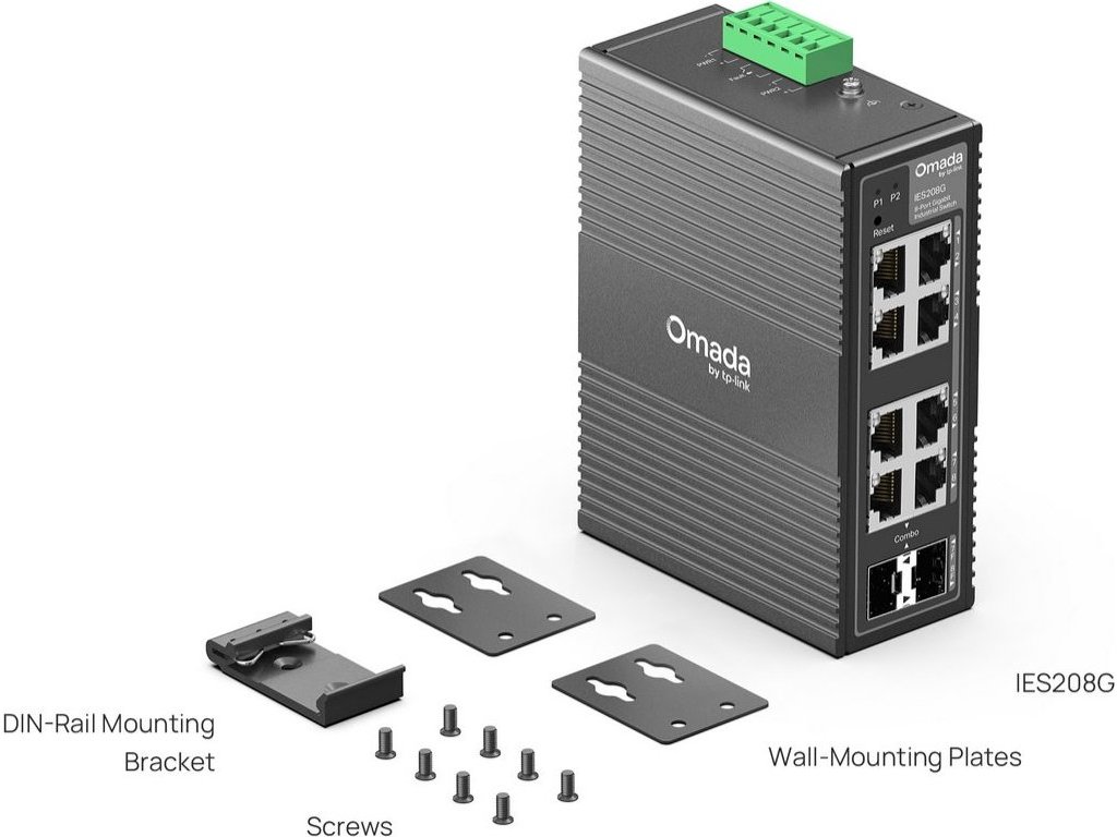 Průmyslový switch Omada IES208G nabízí 8 gigabitových portů v konfiguraci 6× RJ-45 a 2× Combo RJ-45/SFP. Díky své robustní konstrukci s odolným hliníkovým krytem s krytím IP40 a schopností pracovat v extrémním teplotním rozsahu -40 °C až +75 °C je ideálním řešením pro průmyslové prostředí, venkovní instalace a kritické infrastruktury.