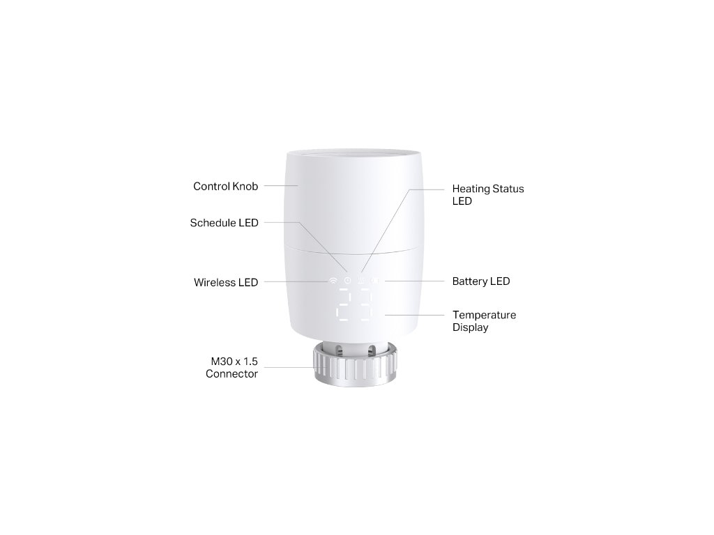 Pusuňte ovládání své domácnosti pomocí Kasa / Tapo Smart prvků o level výše. Inteligentní termostatická hlavice z rodiny Tapo s přímým ukazatelem teploty umí dle vašeho rozvrhu a pokynů odkudkoliv a kdekoliv regulovat teplotu v radiátorech a to díky komunikaci s ústřednou (KH100 - není součástí balení) po bezdrátové frekvenci 868 MHz, která je nezbytná pro správnou funkčnost a která umí najednou obsluhovat až 32 termostatických hlavic. Hlavice je napájena 2x AA baterií s dlouhou životností (záleží na četnosti ovládání ventilu), abyste si mohli dopřát chytré bydlení bez nutnosti tahat nové kabely po domě nebo měnit současné zapojení.