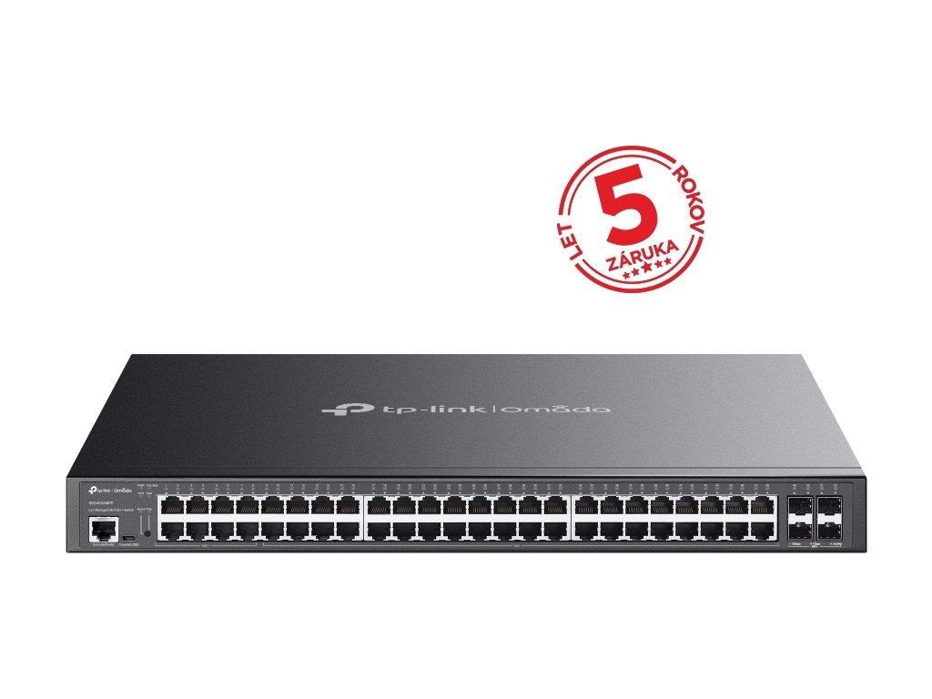 Omada 48portový gigabitový a 4portový 10GE SFP+ Managed switch L2+ se 40 porty PoE+ a 8 porty PoE++