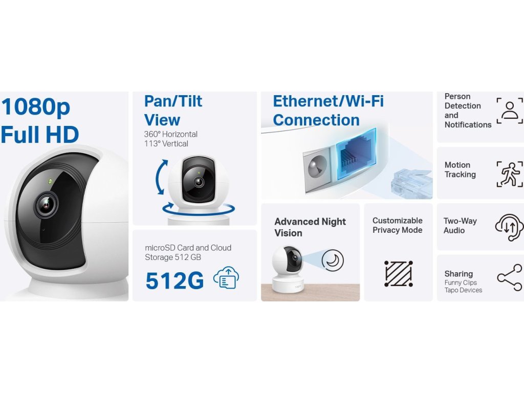 TP-Link Tapo C202 Domácí bezpečnostní Wi-Fi kamera s naklápěním, 2Mpx