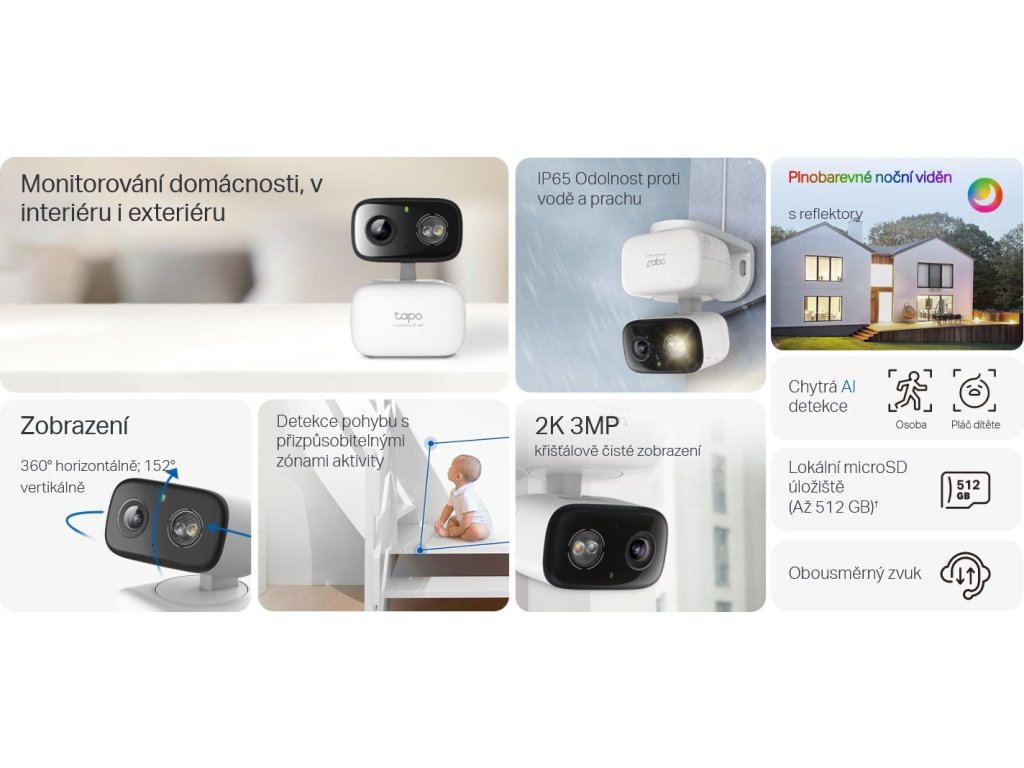 * Ukládání na microSD kartu až 512 GB nebo do Tapo Care cloudu