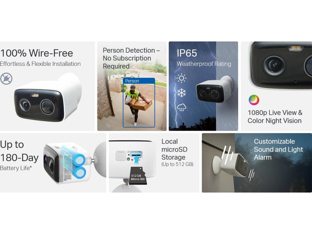 - Lokální úložiště na microSD kartu až 512GB nebo cloudové úložiště Tapo Care