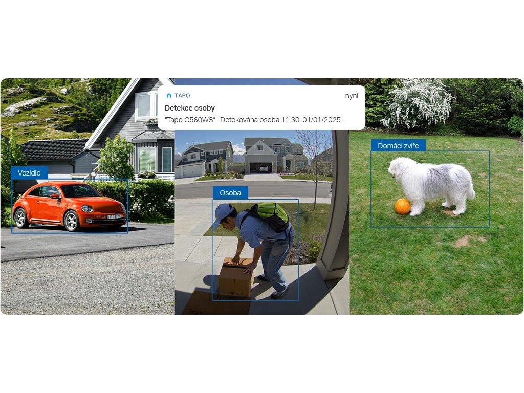 Kamera využívá pokročilou AI pro detekci osob, zvířat, vozidel a narušení vyznačené linie. Můžete nastavit aktivní zóny pro sledování konkrétních oblastí a dostávat přesná upozornění s náhledem přímo do vašeho telefonu.