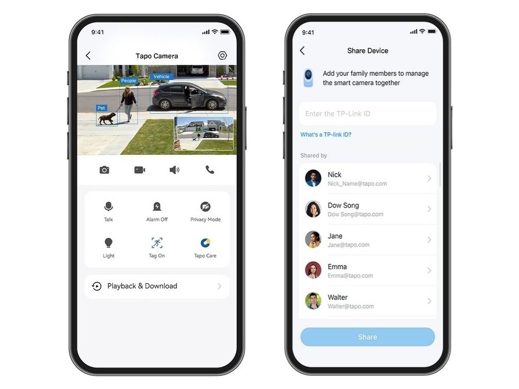 Kamera je vybavena pokročilou technologií rozpoznávání obličejů, která dokáže rozlišit mezi rodinou, přáteli a cizími osobami, což výrazně zvyšuje přesnost upozornění a snižuje počet falešných poplachů. Všechna data o obličejích jsou ukládána lokálně v aplikaci Tapo pro maximální soukromí a bezpečnost.