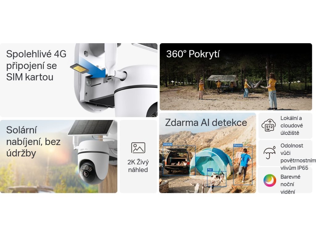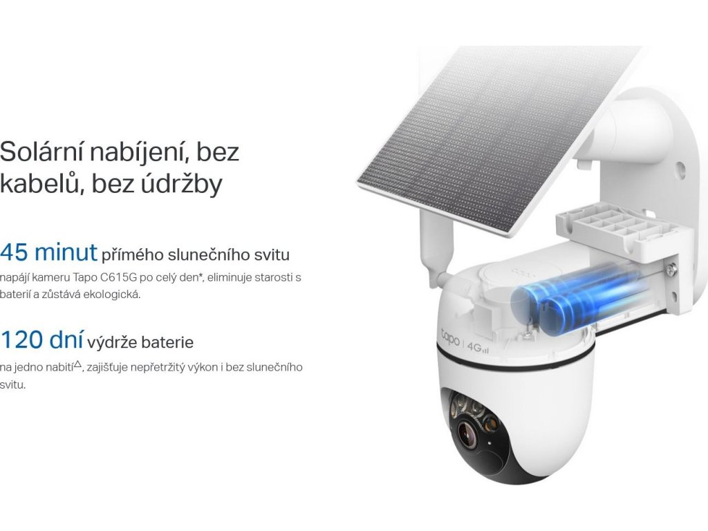 Kamera Tapo C615G KIT představuje kompletní řešení pro zabezpečení vzdálených lokalit jako jsou garáže, rekreační objekty, sklady nebo zemědělské pozemky. Díky 4G LTE připojení a solárnímu napájení lze kameru instalovat prakticky kdekoli s dostatečným pokrytím mobilního signálu.