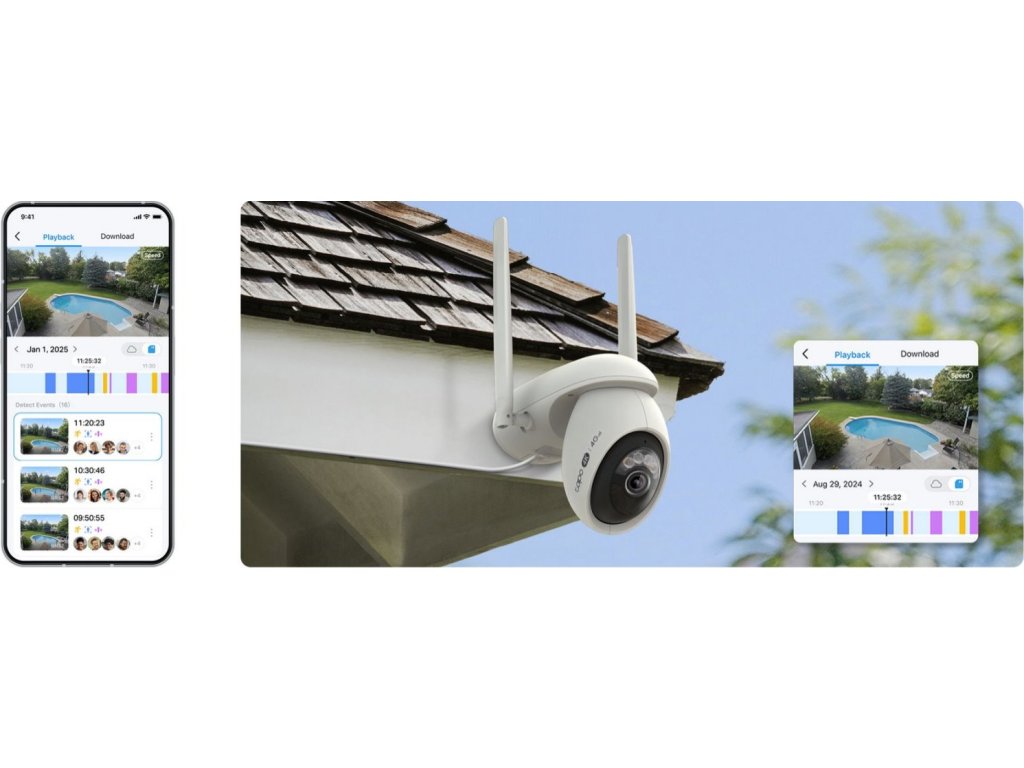S 4K 8 Mpx rozlišením (3840 x 2160) a 18× digitálním zoomem získáte maximálně ostrý obraz, který umožní odhalit i ty nejjemnější detaily. Pan/Tilt konstrukce poskytuje kompletní horizontální rozsah 360° a vertikální 98°, takže jediná kamera pokryje celou plochu bez mrtvých úhlů. 360° AI sledování rozpoznává osoby, zvířata i vozidla, přesně je sleduje a redukuje falešné notifikace.
