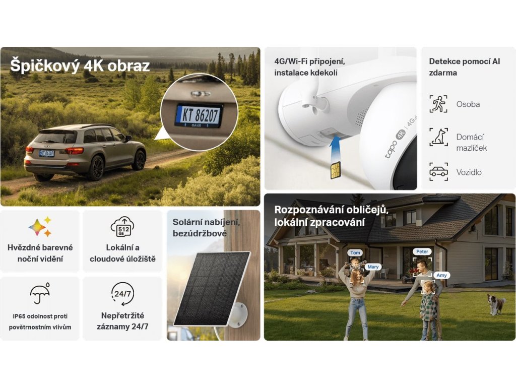 TP-Link Tapo C665G KIT, Chytrá bezdrátová bezpečnostní kamera s WiFi a 4G LTE + solární panel, 8Mpx