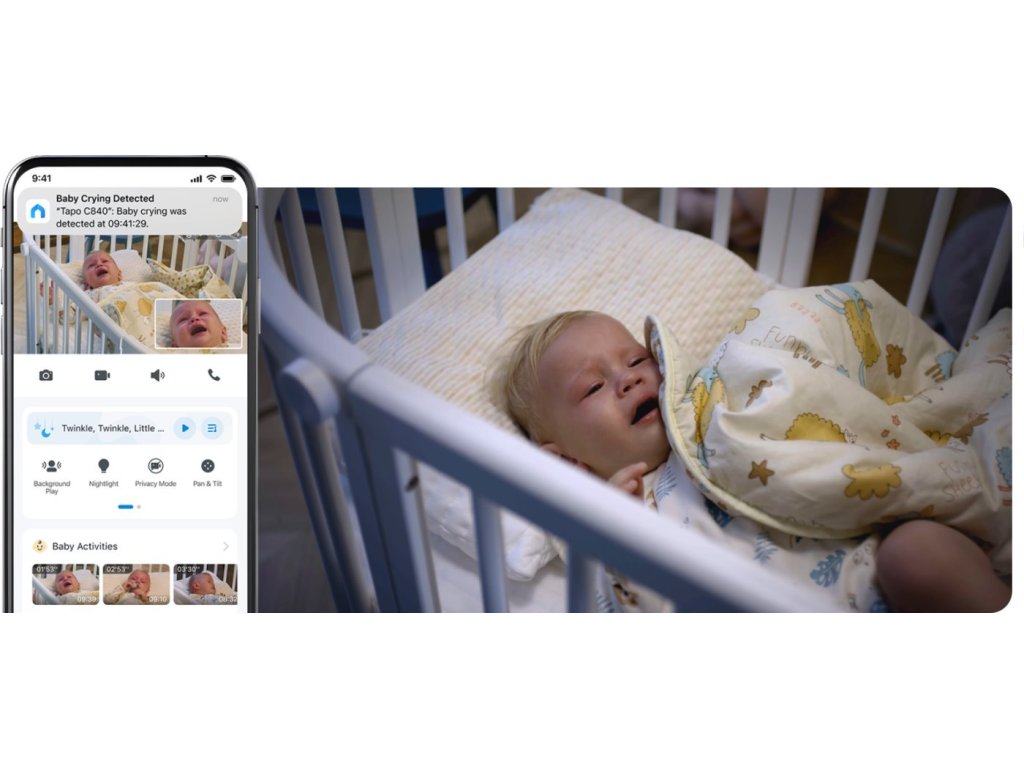 TP-Link Tapo C840 dětská chůvička s dvojitým objektivem, 2K,2560 x 1440, AI detekce audio, MicroSD