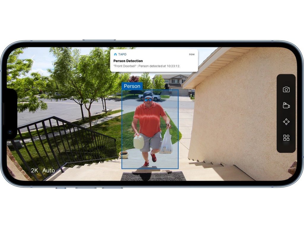 Zvonek nabízí konfigurovatelné zóny aktivity pro přesnější detekci pohybu a úsporu baterie. Funkce Ring Call umožňuje přijímat hovory přímo bez nutnosti otevření aplikace Tapo. 10× digitální zoom poskytuje detailní náhled na zaznamenaný obsah.