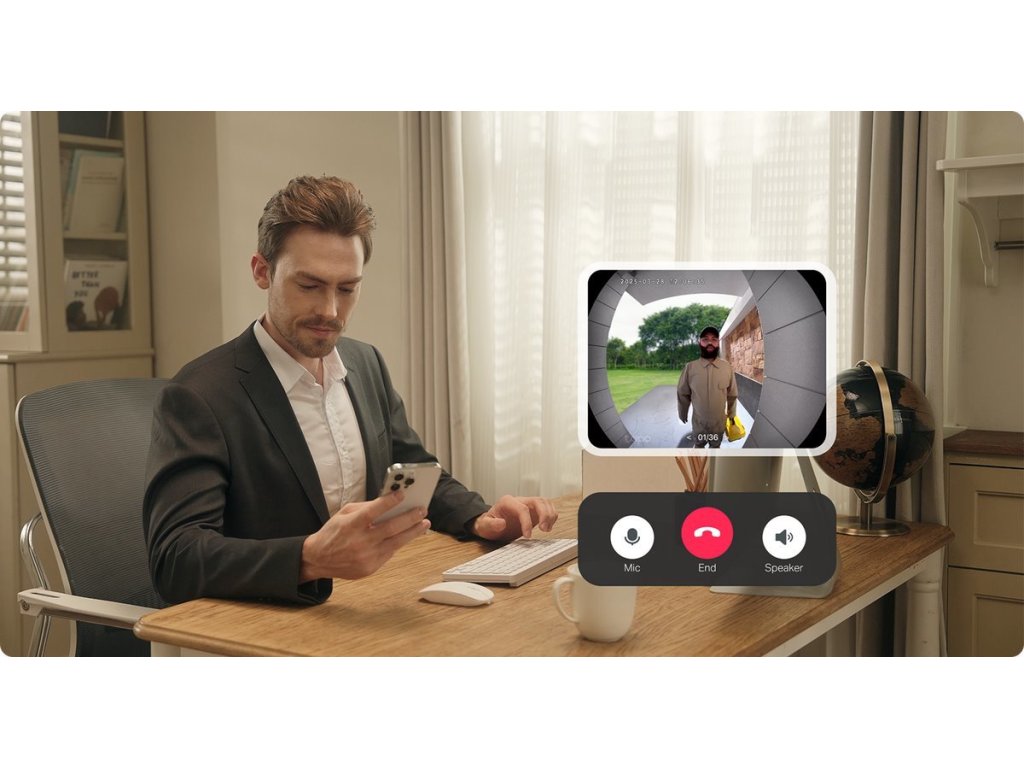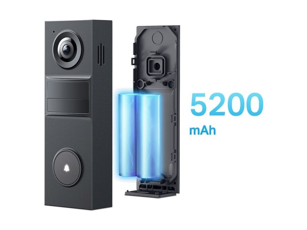 Moderní bezdrátový zvonek vybavený 2K kamerou s rozlišením 2304 × 1296 px a super širokým 160° zorným úhlem pro kompletní pokrytí vstupní oblasti. Integrovaná 5200mAh lithiová baterie poskytuje až 180 dní provozu na jedno nabití při standardním používání.
