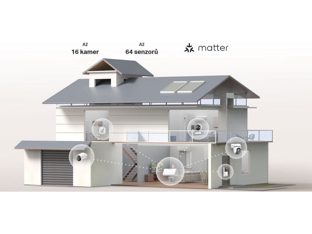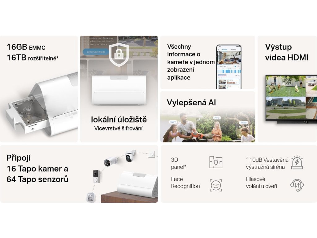 - Kapacita až 16 kamer a 64 senzorů s podporou Tapo a Matter-certifikovaných zařízení