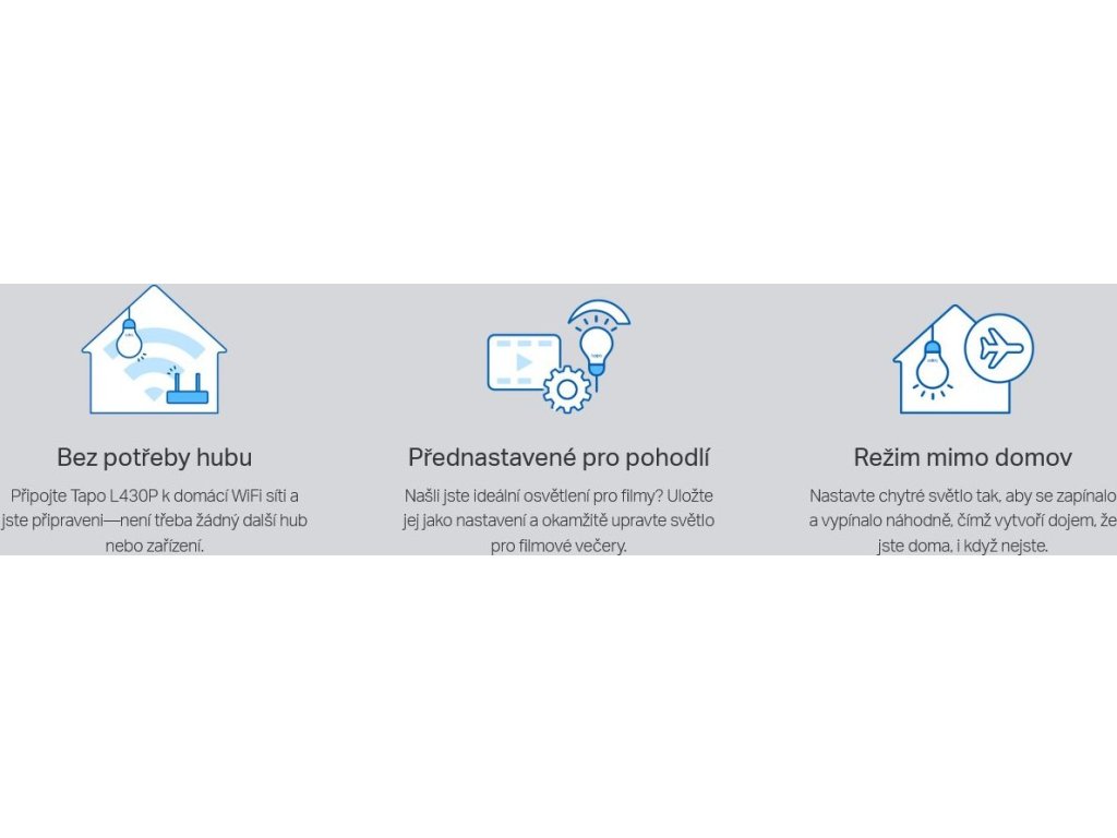 * Zapínejte a vypínejte světlo odkudkoliv přes aplikaci Tapo a simulujte přítomnost doma pomocí režimu „Pryč“.