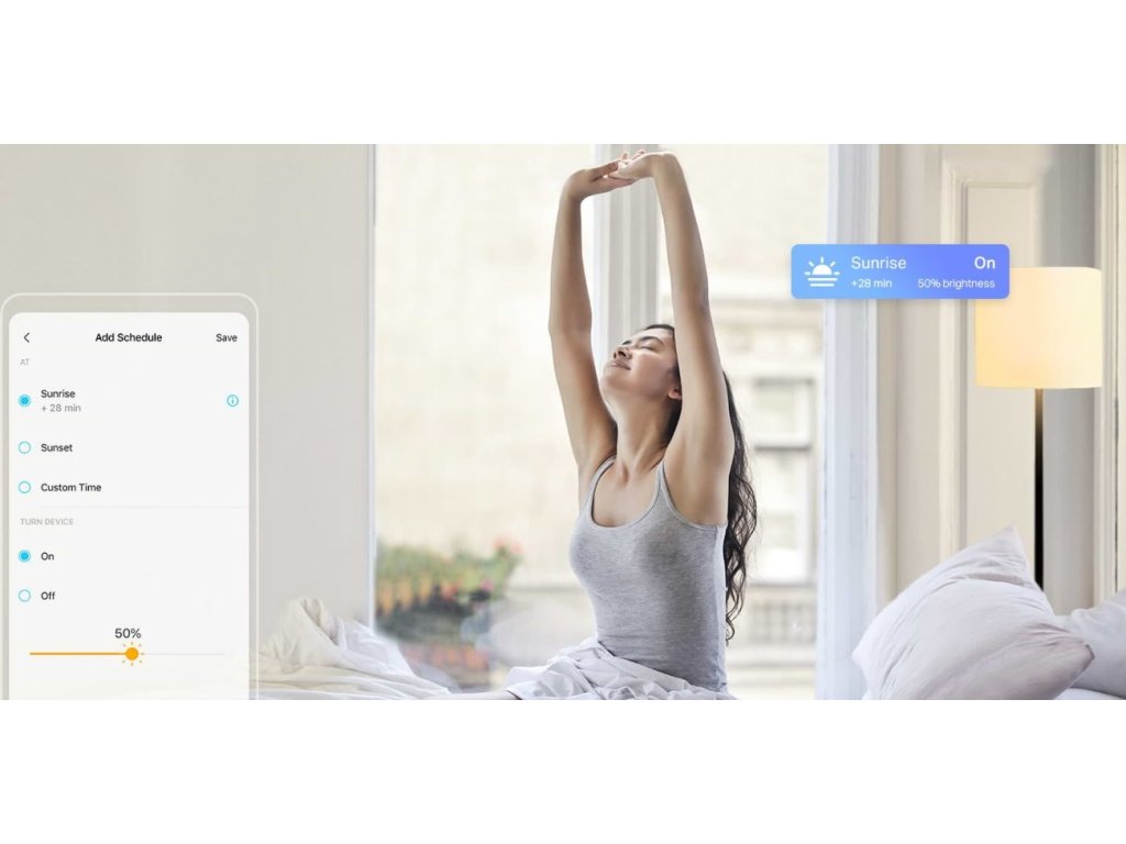 Jednoduše připojte chytrou žárovku k domácí Wi-Fi síti a ovládejte pomocí aplikace Tapo kdekoliv se pohybujete. Nepotřebujete žádné další ovládací prvky. Žárovka podporuje také hlasové ovládání Amazon Alexa a Google Assistant. Lze ji stmívat a rozsvěcovat ručně nebo na základě nastavitelných časových rozvrhů.