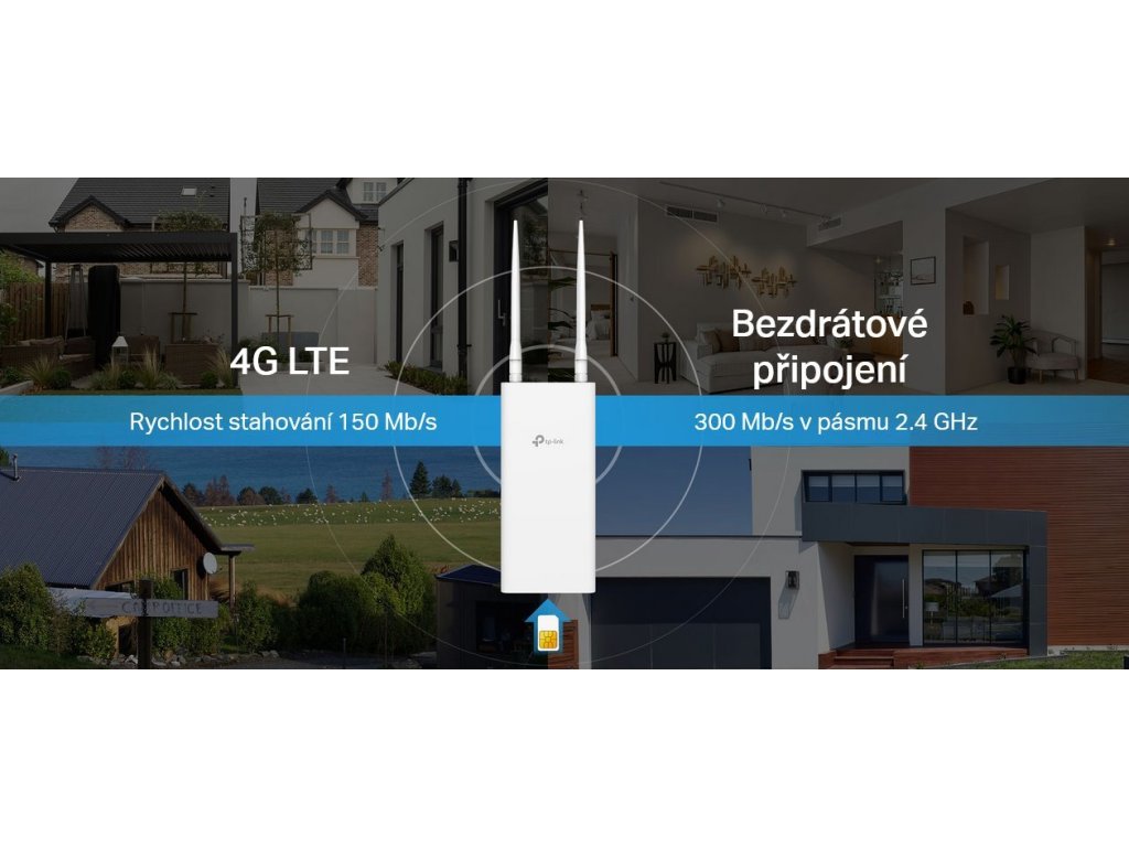 TP-Link TL-MR100-Outdoor, 4G LTE venkovní router, 2.4GHz, 300Mbps, vestavěný slot pro SIM