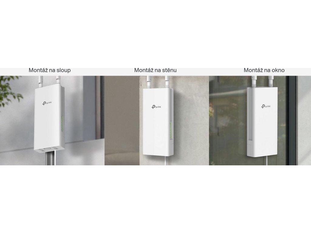 - Flexibilní možnosti montáže na zeď, okno nebo sloup