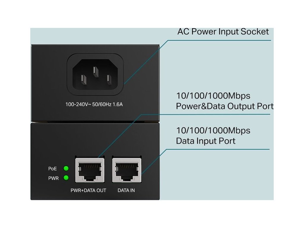 TP-Link TL-POE170S Gigabitový PoE injektor, 802.3af/at/bt, 60W