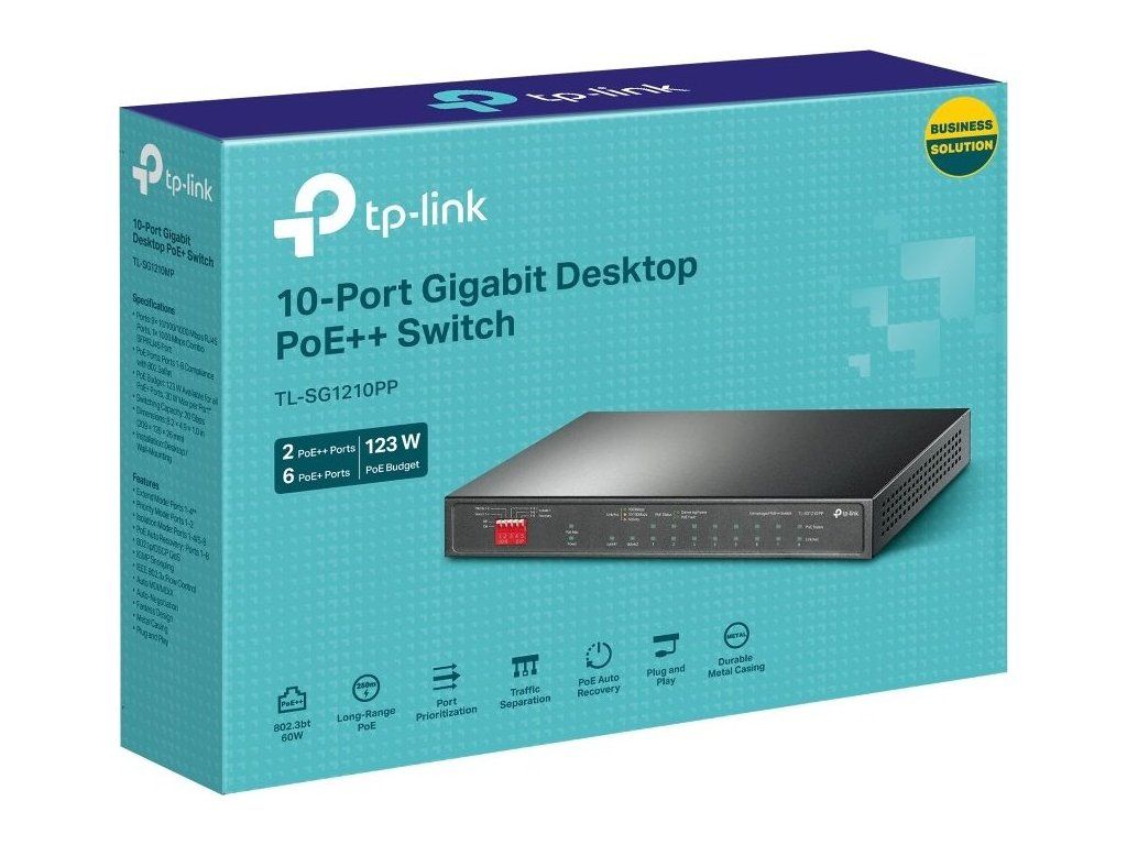 TP-Link TL-SG1210PP - 10-portový Switch PoE+ s 8x GLAN PoE+, 2x GLAN, 1x Combo Gigabit SFP, 123W PoE budget