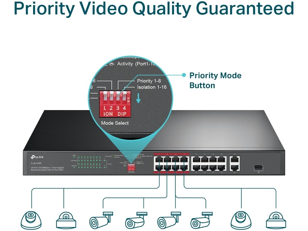 *Prioritní režim pro porty 1-8, který zaručuje kvalitu citlivých aplikací, jako je například video monitor