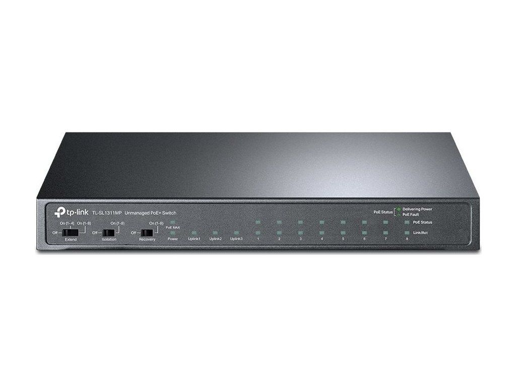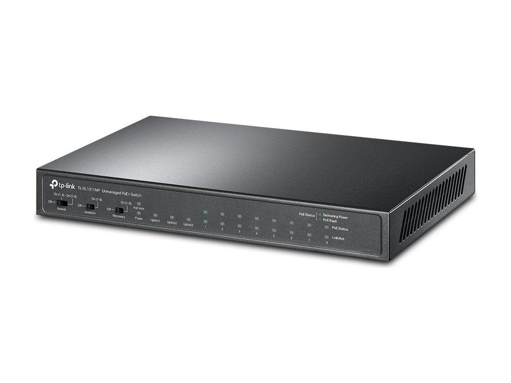 TP-Link TL-SL1311MP - stolní switch s 8 porty 10/100 Mbit/s, 3 gigabit porty a 8 porty PoE+