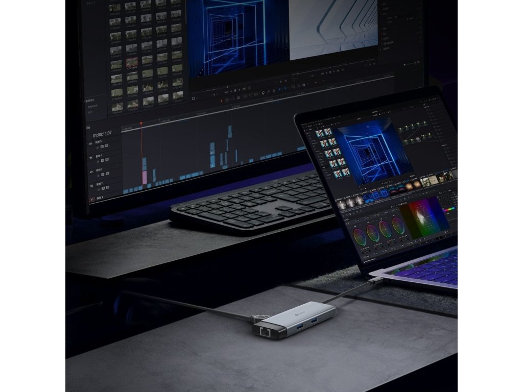 - Šest portů v jednom kompaktním zařízení: 1× HDMI, 1× USB-C, 2× USB-A, 1× RJ-45 a 1× USB-C Power Delivery