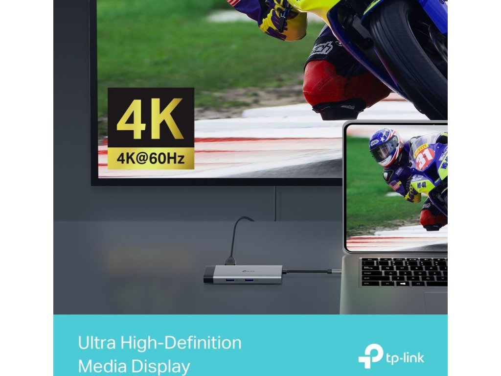 TP-Link UH6120C je všestranná dokovací stanice, která jedním připojením rozšíří možnosti vašeho notebooku nebo tabletu o 6 různých portů. Nabízí výstup HDMI s podporou 4K při 60 Hz, gigabitový ethernet pro stabilní síťové připojení a dva USB 3.0 porty pro vysokorychlostní přenos dat.