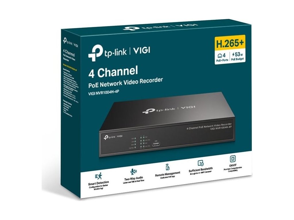 TP-Link VIGI NVR1104H-4P4kanálový síťový videorekordér VIGI s podporou PoE+.