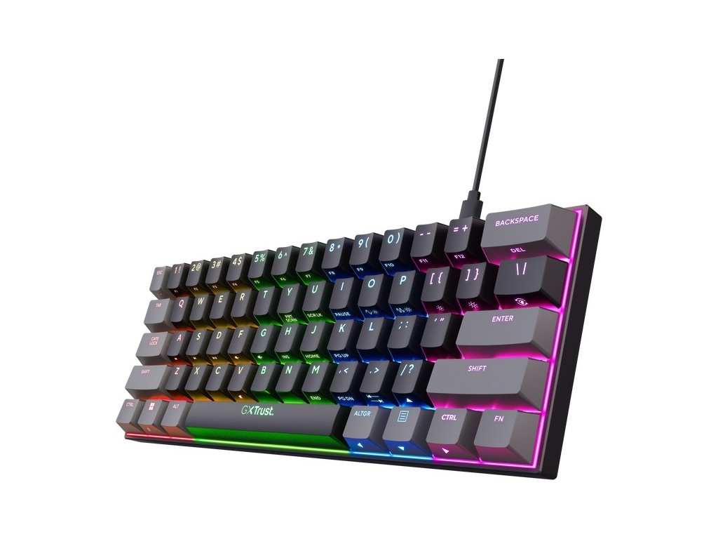 * kompaktní 60% uspořádání klávesnice zaručí více prostoru pro pohyby myší a více místa na stole