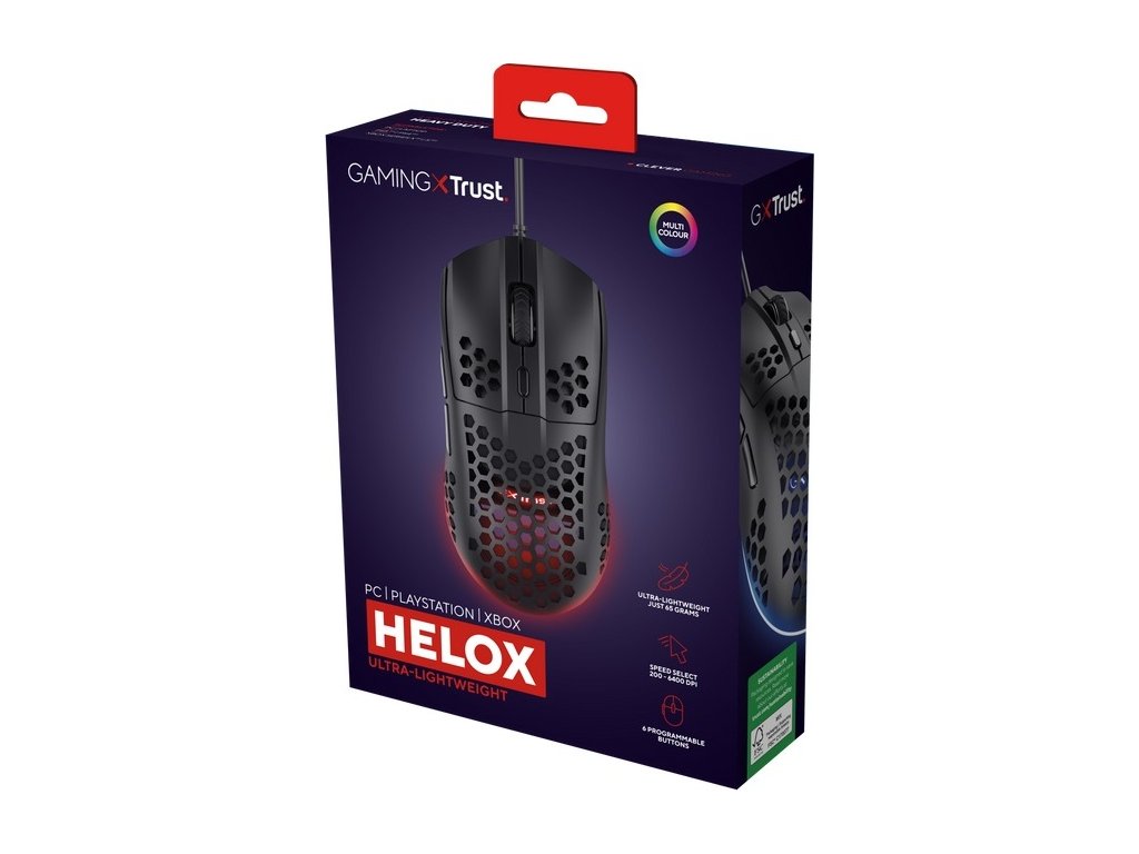 Trust Gaming GXT 928 Helox/Herní/Optická/Pro praváky/6 400 DPI/Drátová USB/Černá