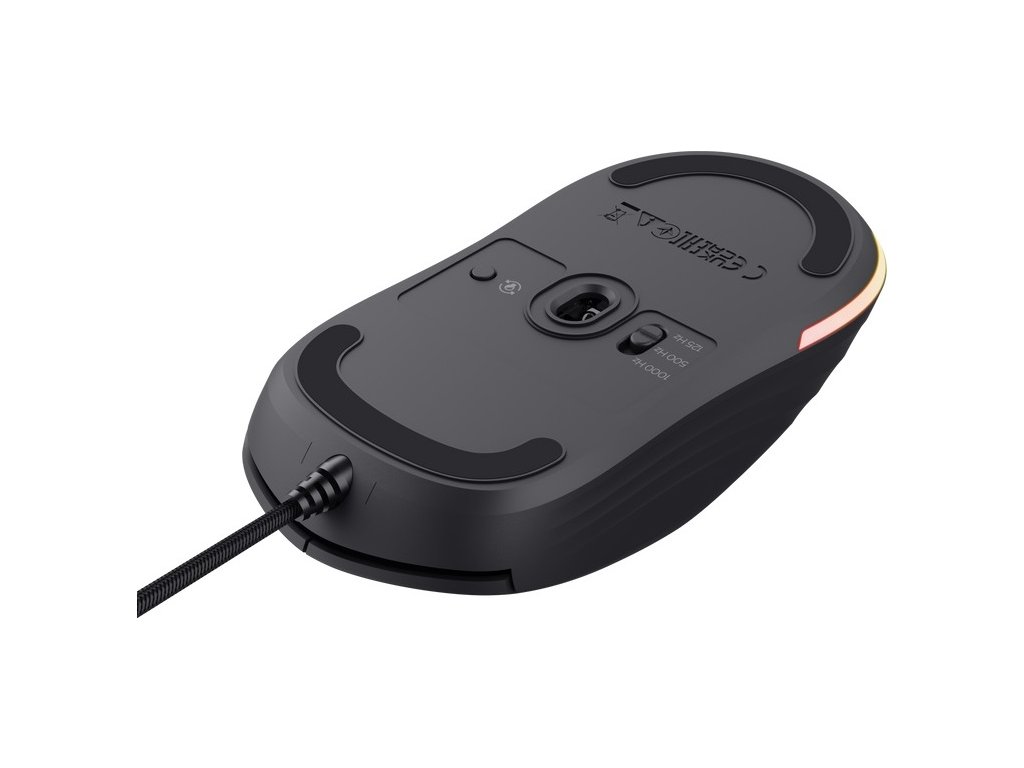* polling rate posuvník na spodní strně myši (125, 500, 1000Hz)