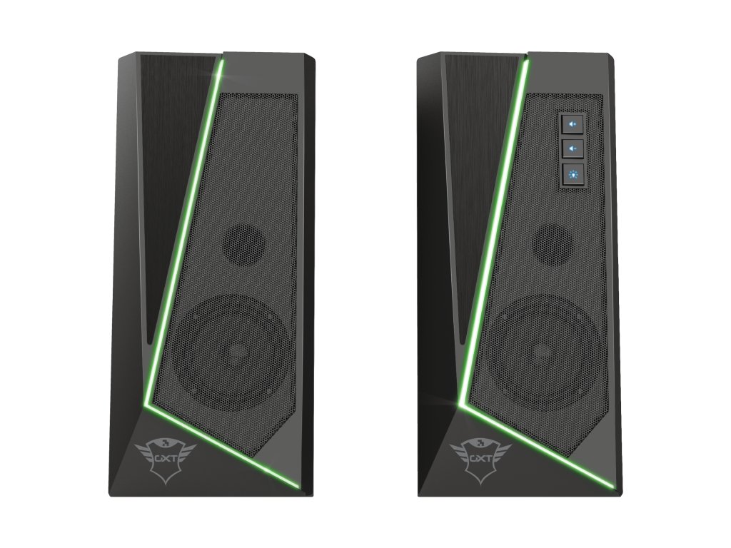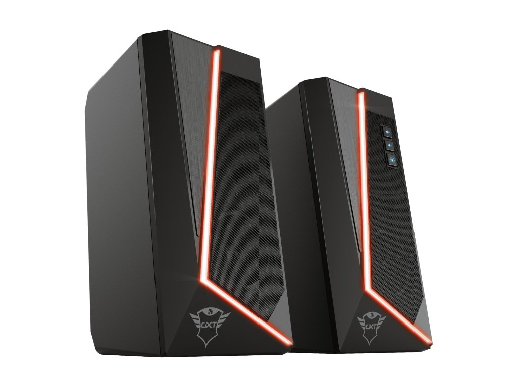 Trust GXT 609 Zoxa RGB Illuminated Speaker Set. Stylová sada stereofonních reproduktorů s osvětlením RGB a snadno dostupnými ovládacími prvky. S elegantním designem a jemným RGB osvětlením je Trust GXT 609 Zoxa stylovým doplňkem každého stolu. Kromě toho se tato sada stereofonních reproduktorů snadno používá a nepotřebuje ani zásuvku. Zapnou se automaticky při zapnutí počítače.