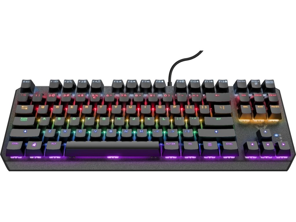 Kompaktní herní klávesnice bez numerického bloku s mechanickými spínači a duhovým podsvícením