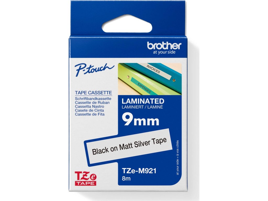 TZE-M921 - černý tisk/matně stříbrný podklad, 9mm