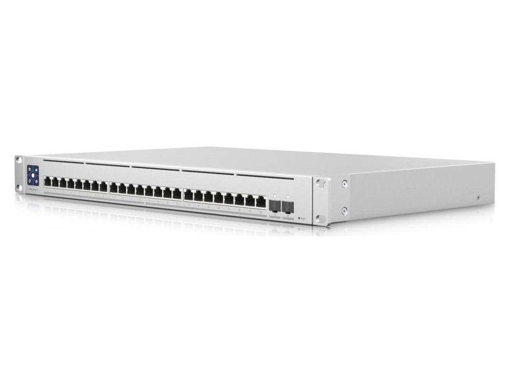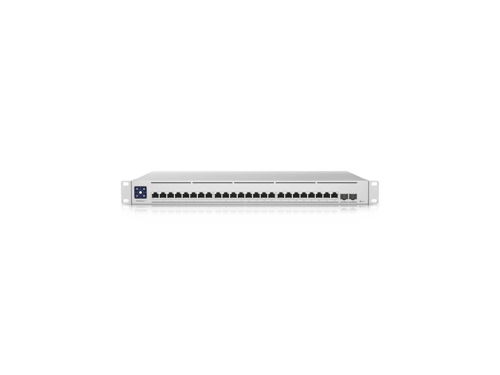 USW-EnterpriseXG-24 je plně managovatelný Gigabitový L3 switch s 24 100M/1G/2.5G/5G/10G LAN porty a dvěma porty SFP28 s přenosovou rychlostí 1/10/25 Gbps. Switch má kromě standardní výbavy také 1,3" dotykový displej pro poskytování informací o systému, teplotě, statistice portů a mnohém dalším.