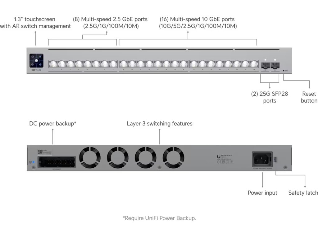 Ubiquiti UniFi Switch Pro XG 24 - 16x 10GbE, 8x 2.5GbE, 2x SFP28, Etherlighting