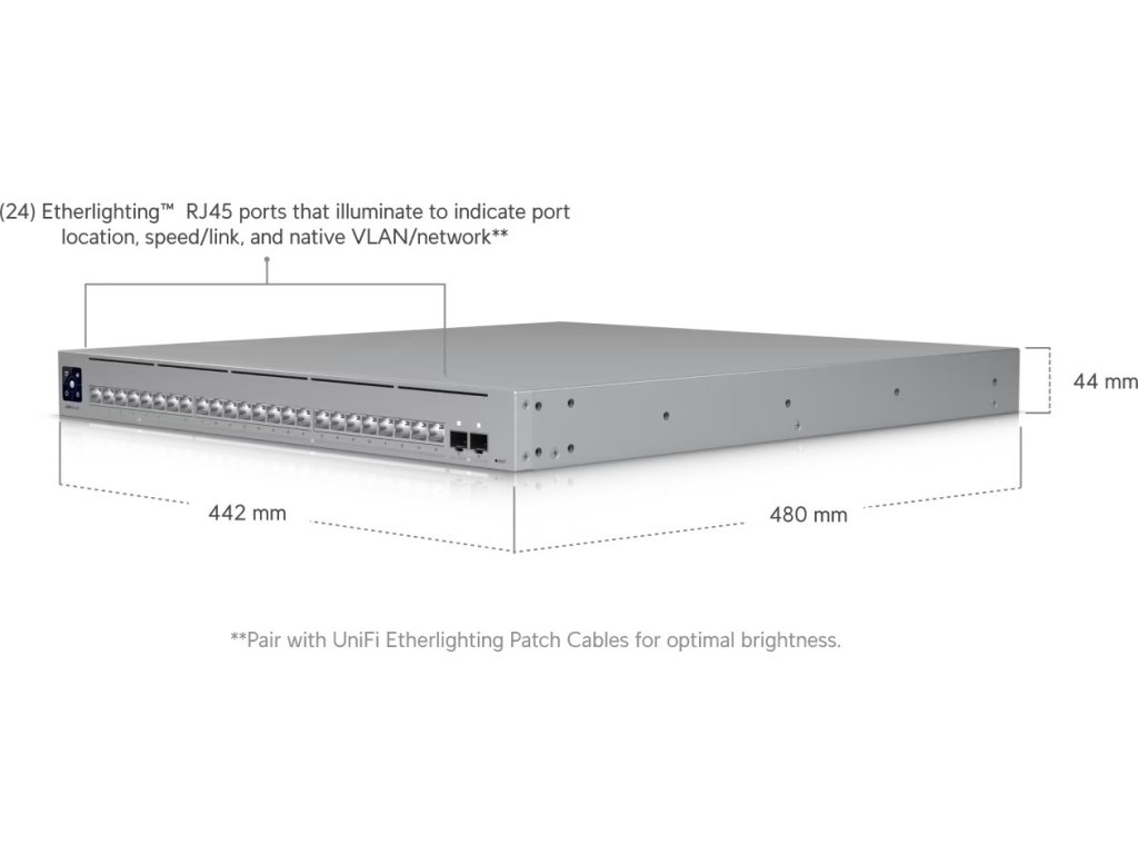 Profesionální 24portový switch L3 vrstvy Etherlighting™ disponující 16× 10G RJ-45, 8× 2,5G RJ-45 a 2× 25G SFP28 porty pro uplink.
