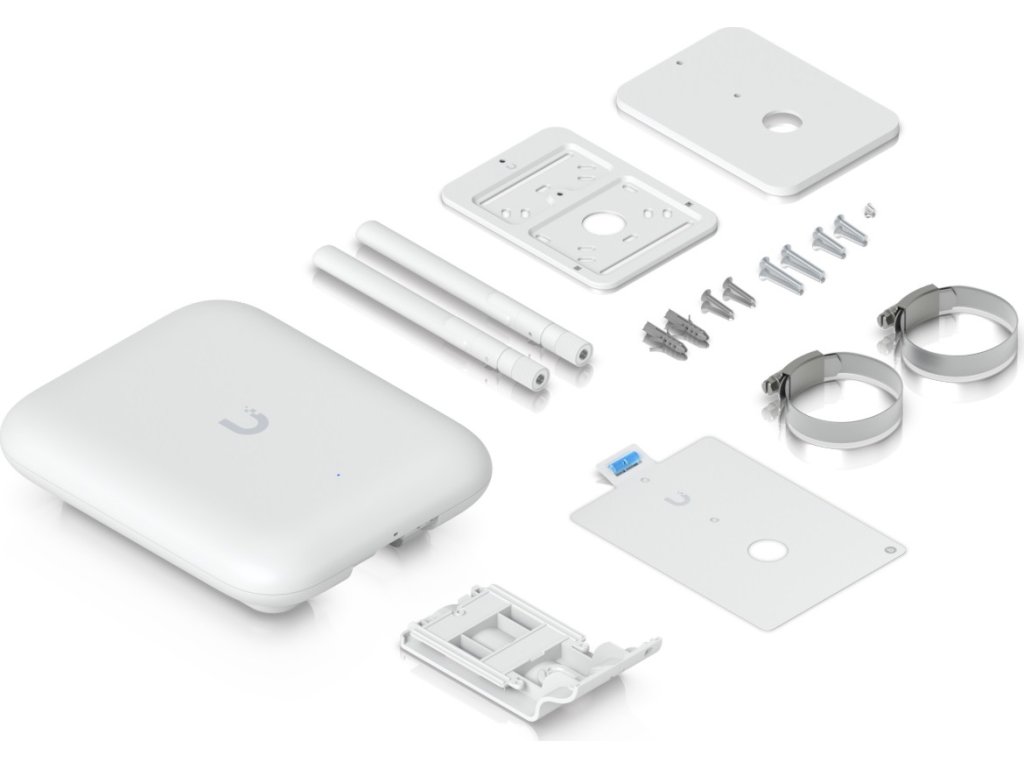 UniFi U7 Outdoor je spolehlivé venkovní hotspotové řešení využívající standard 802.11a/b/g/n/ac/ax/be. Je vybaveno anténním systémem MIMO 2×2 v podobě integrované směrové antény se ziskem 8 dBi/ 12,5 dBi (2,4 GHz/ 5 GHz) a šířkou paprsku 90°/45° (2,4 GHz/ 5 GHz). Součástí balení jsou také dvě externí všesměrové antény se ziskem 3 dBi/ 4 dBi (2,4 GHz/ 5 GHz), které navíc podporují softwarové nastavení šířky paprsku.