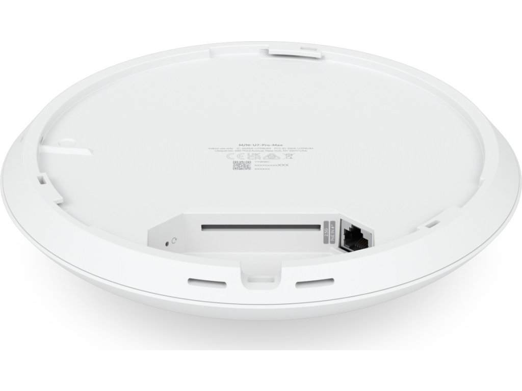UniFi U7 Pro Max je designově povedené vnitřní hotspotové řešení využívající standard 802.11a/b/g/n/ac/ax/be. Je vybaveno anténním systémem MIMO 2×2 (2,4 GHz), MIMO 4×4 (5 GHz) a MIMO 2×2 (6 GHz) v podobě integrovaných antén se ziskem 4 dBi/ 6 dBi/ 5,9 dBi (2,4 GHz/ 5 GHz/ 6 GHz).